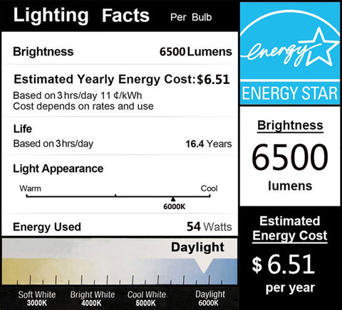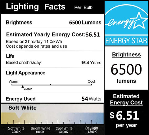 Color: 54w / 400w Equivalent / 6500 LM