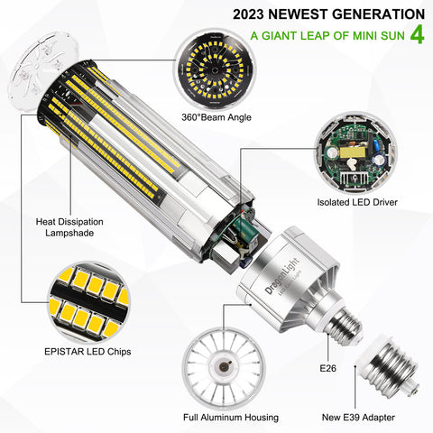 US Design with 2023 Newest LED technology. Full Aluminum-plated housing with strong isolated LED driver. Fanless design with fast heat dissipation, slim body with diamond PC lampshade. Good for totally enclosed and open luminaries in totally quiet operating
