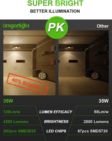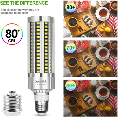 DragonLight 35W LED corn light bulb's base is E26/E39 (Europe: E40 to E27 adapter)