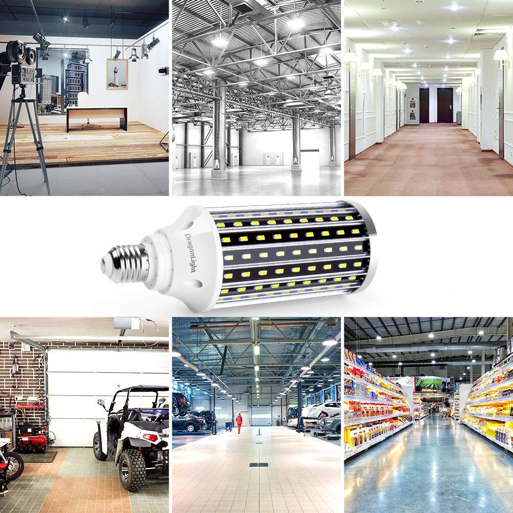 - E26 with E39 Adapter(Europe: E40 to E27 adapter), fit both screw-in regular medium and large mogul base fixtures, widely used at home, garage, basement, security, factory, supermarket, office, parking lot, church, exhibition hall, gym wherever need sufficient lighting