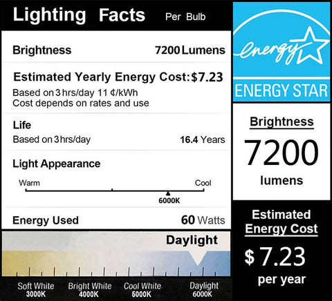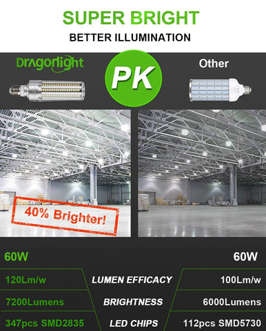 50% smaller, 30% lighter, illuminates more concentrated lighting like a mini sun,comparatively 40% brighter than other 60W LED bulb.Replace 500W with 60W while save up to 80% energy